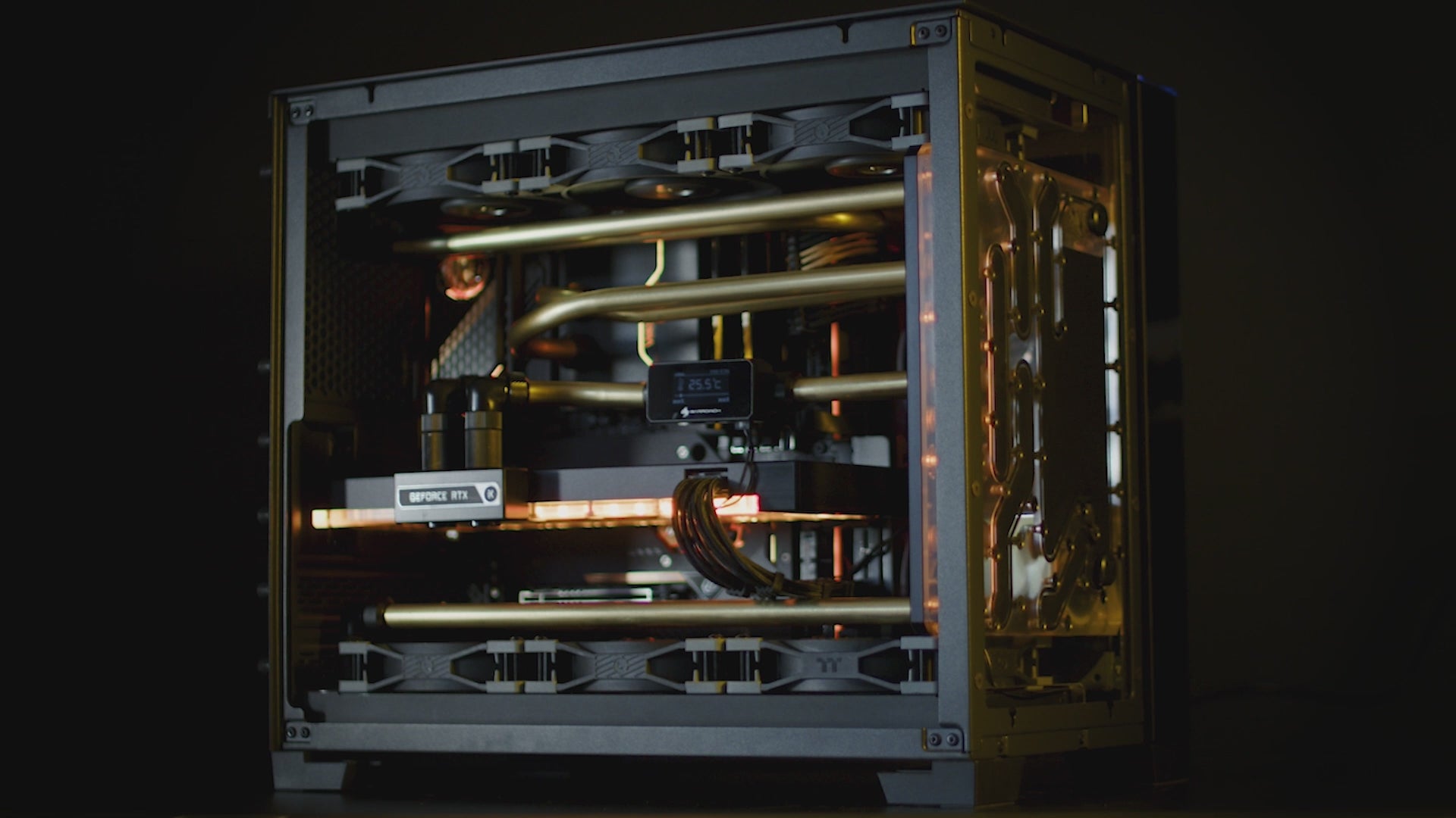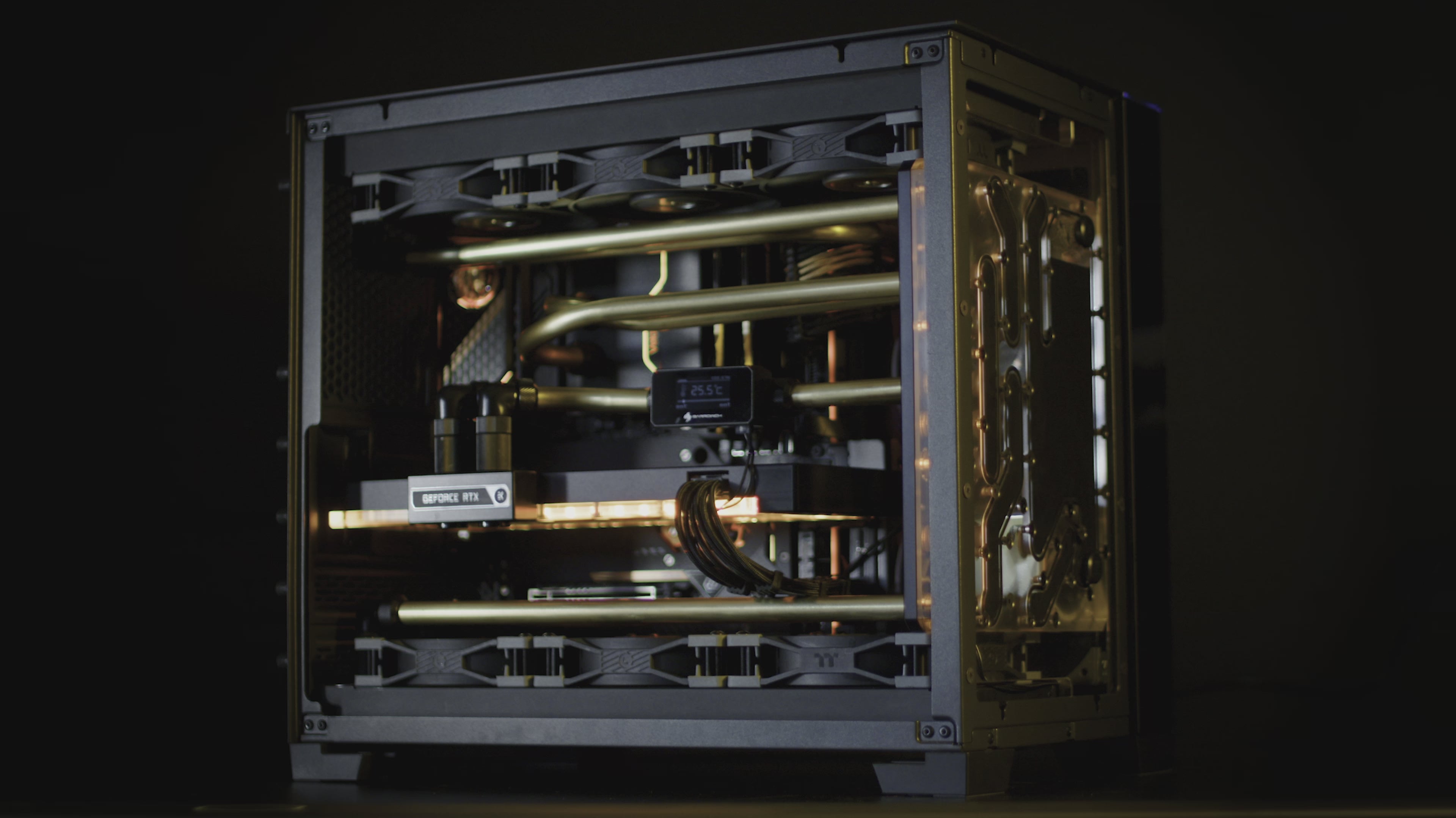 'PHOBOS' isn't just a gaming PC; it's a testament to the marriage of art and technology. It seamlessly blends unparalleled performance with the elegance of brass metal tubing, creating an avant-garde masterpiece that not only elevates your gaming experience but also graces your space with its mesmerizing presence. Whether you're a gaming enthusiast or appreciate fine art, PHOBOS is designed to captivate both your senses and imagination, pushing the boundaries of what a gaming PC can achieve powered by a unique watercooled list of components.