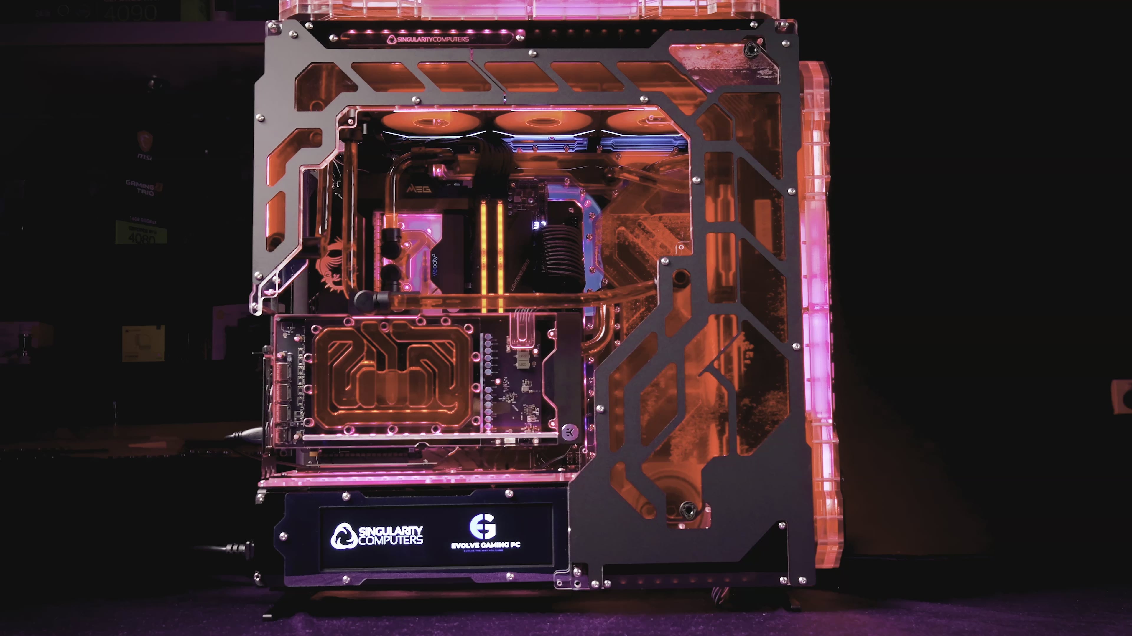 Zeus offering only the best watercooling components featuring within the Singularity case completely custom fabricated acting as an entire distro plate for maximum amount of water volume for whatever is thrown at this godly build.
